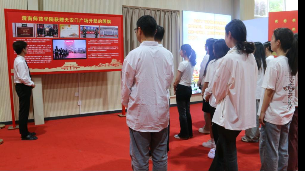 2024年我校获赠了2023年5月9日天安门广场升起的五星红旗。值此“校庆日”来临之际,5月8日下午,我校组织青年马克思主义者培训第十一期培训班30余名学员在渭师青年之家开展此次参观国旗展馆和红色长廊活动。