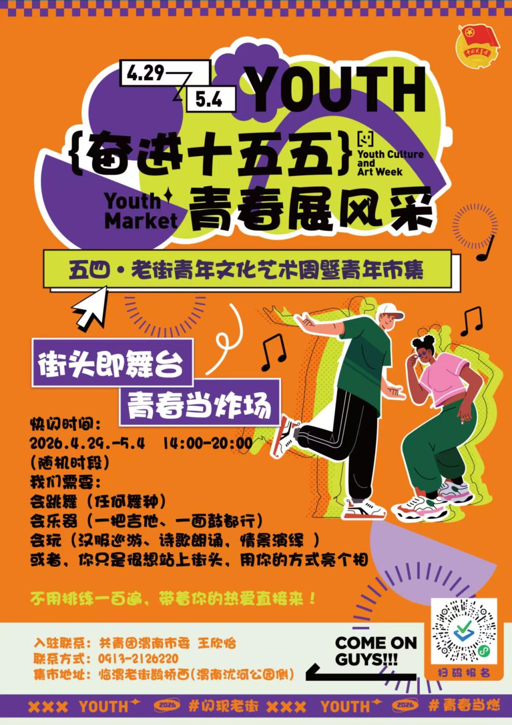 为深入学习贯彻习近平总书记关于青年工作的重要论述,大力弘扬五四精神,推动 “青年 + 文旅 + 青创” 深度融合,充分展示我校青年学子昂扬向上的精神风貌,根据中共渭南市委宣传部、渭南市文化和旅游局、共青团渭南市委等单位联合印发的《关于举办 “奋进十五五・青春展风采”—— 五四青年节文化艺术周暨青年市集活动的通知》要求,现面向全校各二级学院团委征集五四青年文化艺术周参演节目,具体事宜通知如下: