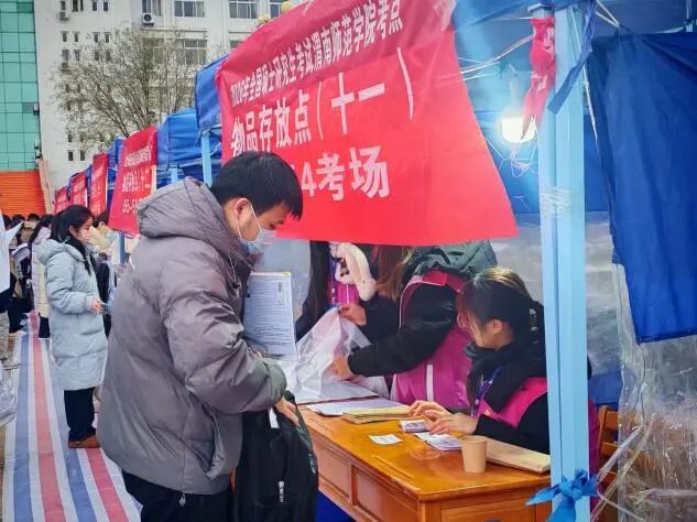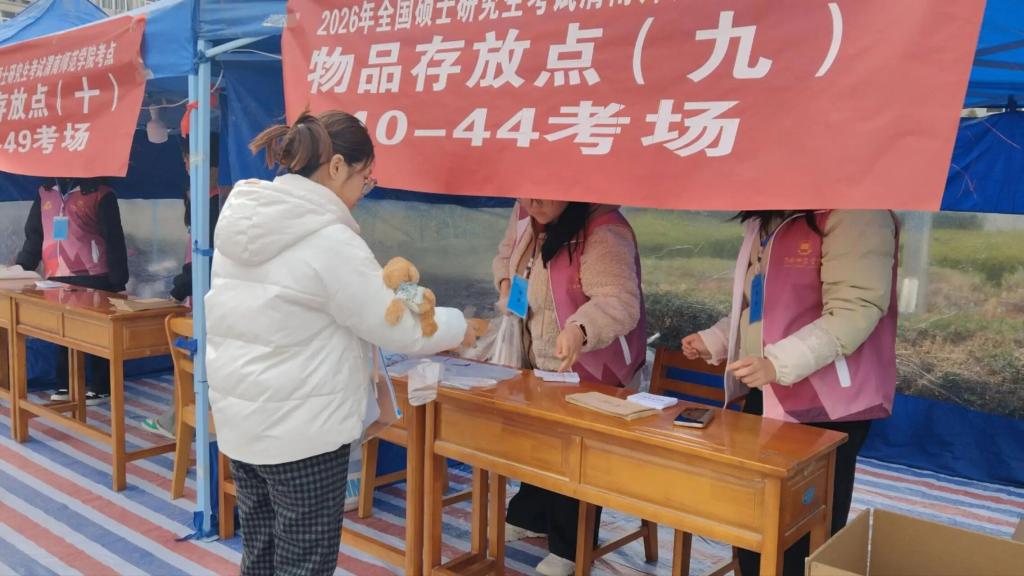 考试正式开始前,志愿者们迅速进入工作状态,在服务区域有条不紊地开展工作。针对考生携带的各类物品,志愿者引导大家有序排队、登记存放,确保每件物品都能被妥善安置。“同学,放心去考试,物品交给我们!”一句句真诚的叮嘱,一个个忙碌的身影,汇聚成考场上一道靓丽的风景线,让考生们得以轻装上阵、安心赴考。