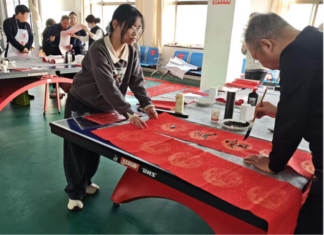 教育科学学院学子积极担当文化传承使命,以实践为桥,让传统文化走进千家万户。科教专业张诗瑶同学深入社区开展“非遗进社区”活动,邀请传承人教授剪纸技艺,现场书写春联送祝福,两场活动惠及200余人,让传统文化走近群众,也让青年学子体悟到文化传承的责任。